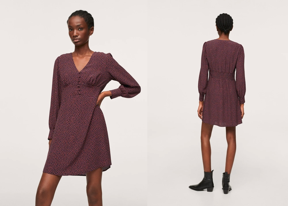 Por 22,99€ también puede ser tuyo este vestido con estampado floral de Mango, ya que tiene una rebaja del 23%. Disponible en varias tallas y en acabado con fondo negro o con fondo rojo para elegir.