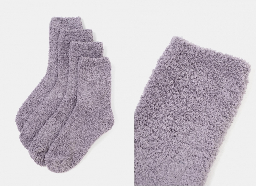 Unos calcetines suaves al tacto, cómodos, gruesos para andar sin zapatillas por la casa, con pelito, cálidos, y fabricados en 99% poliéster y 1% elastano para darles mayor elasticidad.
