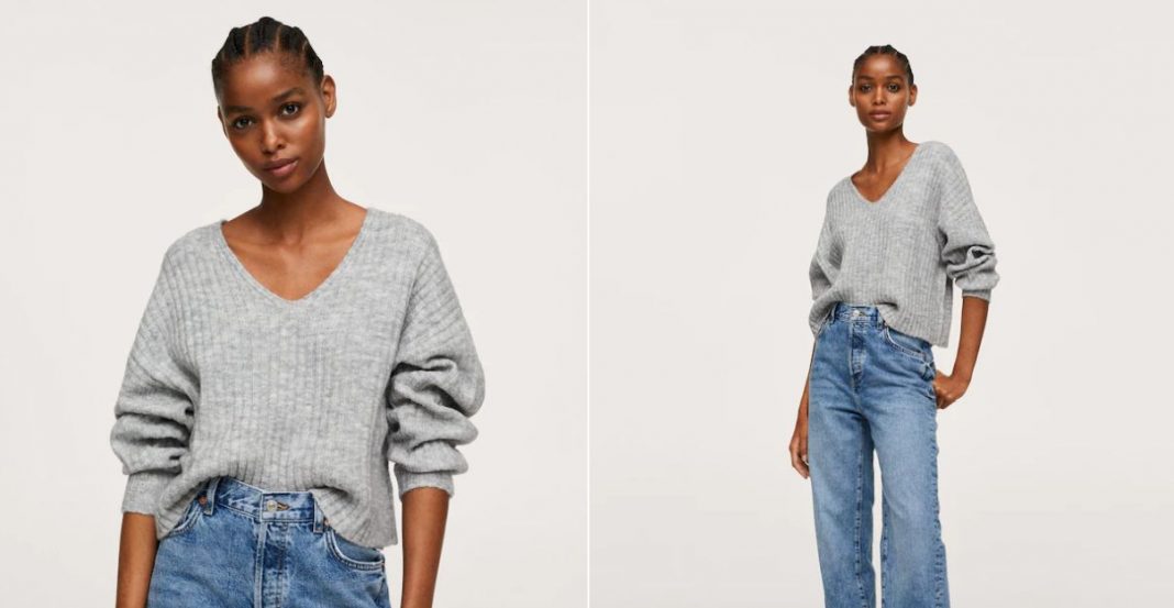 Comenzamos con la opción más económica y con la que triunfarás estas fiestas, ya que combina con todo y es elegante y cómodo. Es un jersey de punto canalé que Mango lo vende en gris o camel y que ahora está rebajado un 50%, quedándose el precio en 12,99 euros. Está hecho en un tejido de punto de canalé y elástico, con diseño recto, cuello pico, manga larga y costura del hombro caída.