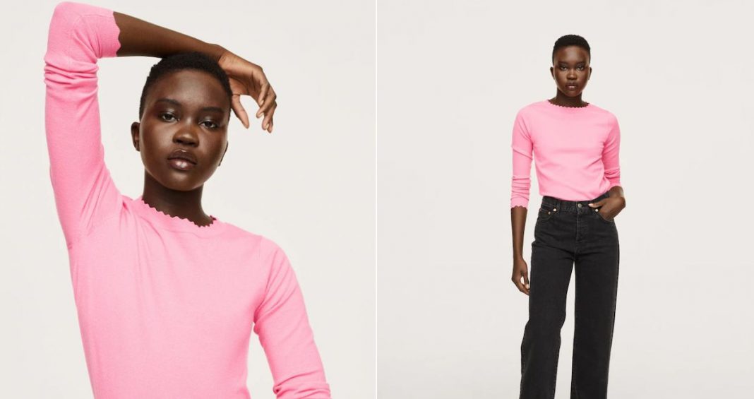 Si quieres un jersey original para ti o para regalar esta puede ser una opción perfecta, al mismo precio que hemos visto en los anteriores. El color rosa chicle es muy llamativo, pero tienes otros dos colores menos llamativos como el negro y el marrón, más invernales. Tú eliges, pero los tres son de punto fina, diseño recto y cuello redondo con terminaciones festoneadas.
