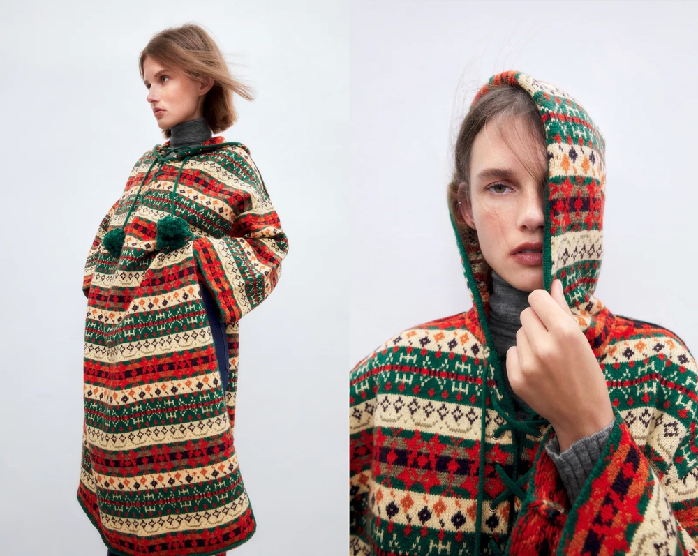 La siguiente prenda para ir confortable en la época de frío es este poncho de lana jacquard de Zara. Con un un 40% de descuento para que te lo puedas llevar por 39,99€.