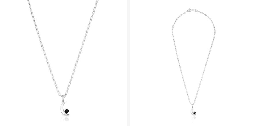 Vamos con otra propuesta de collar más exótica, con un motivo de luna de plata y onix Magic Nature. Un gran regalo con un colgante original. Es una joya con plata de primera ley con onix de 4,5mm y con un tamaño de la luna de 15mm. La longitud del collar es de 45cm, con anilla a 40cm. Su precio está en 85 euros.