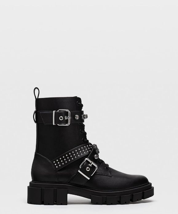 Además de zapatillas, en Stradivarius también puedes conseguir botines como los que estás viendo en la imagen. Destacan por tener un bonito detalle de hebillas en la parte del empeine otro en forma de tirador en la parte posterior. Su precio, al estar rebajado, se queda en tan solo 35’99 euros.
