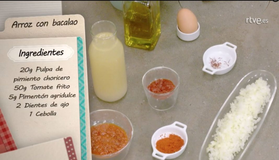 Para llevar a cabo la receta del arroz con bacalao del chef Dani García debes disponer de un total de 16 ingredientes. Las cantidades varían en función de las personas para las que cocines, pero para sacar 4 raciones necesitarás: