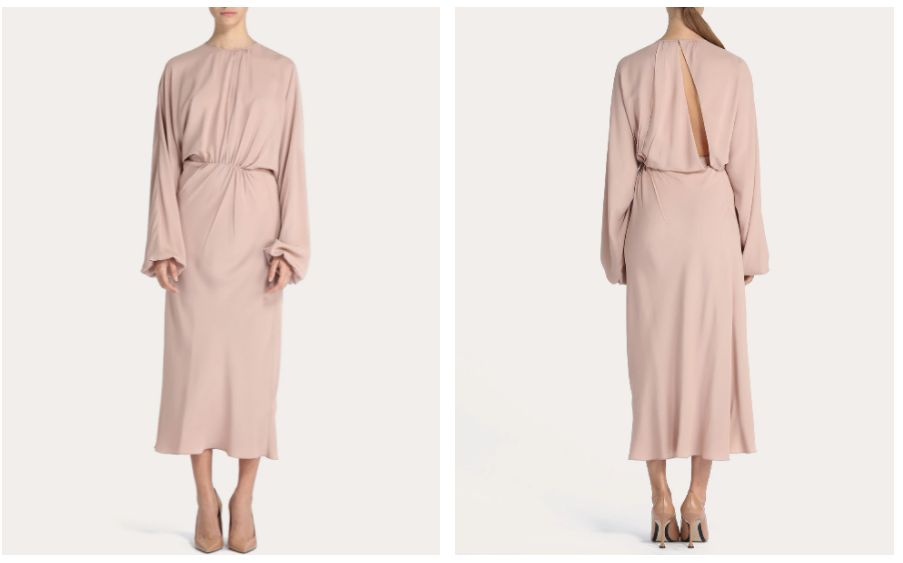Este otro vestido tiene como ves un tono similar al anterior, pero de un estilo y corte totalmente diferente. Es un vestido largo Nº21 que El Corte Inglés rebaja ahora de los 580 a los 290 euros. Una prenda para las grandes ocasiones y deslumbrar. Es un vestido de crepé fruncido en escote redondo y cintura, con mangas largas de globo y corte asimétrico en la espalda con cierre abotonado. Lo puedes comprar aquí.