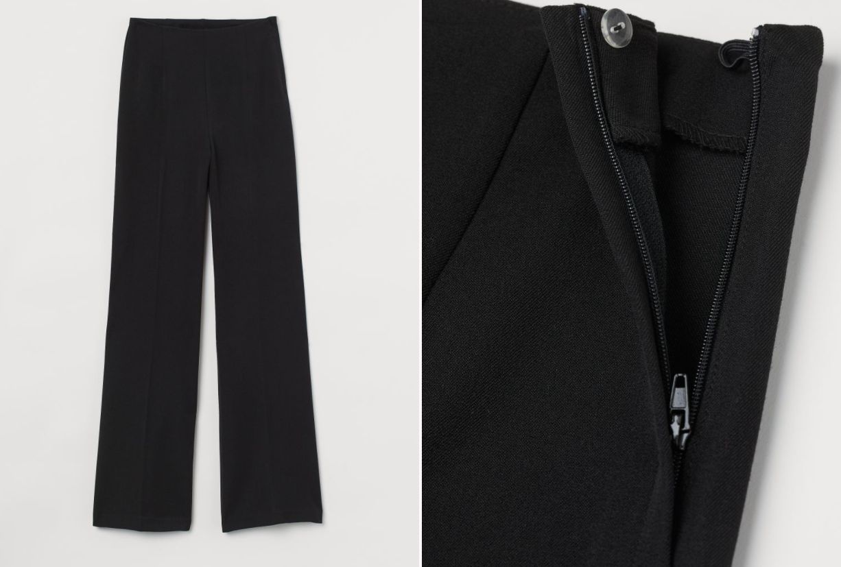 Terminamos con una última opción de H&M que combina con casi todo, tanto para el día a día como para uno día especial de estas fiestas. Es un pantalón de corte recto en sarga elástica, con talle alto con elástico oculto en la cintura, cremallera oculta con botón en un lateral y perneras amplias con raya. En este caso lo tienes solo en negro y su precio, una vez, no te afectará mucho a tu economía: 27,99 euros.