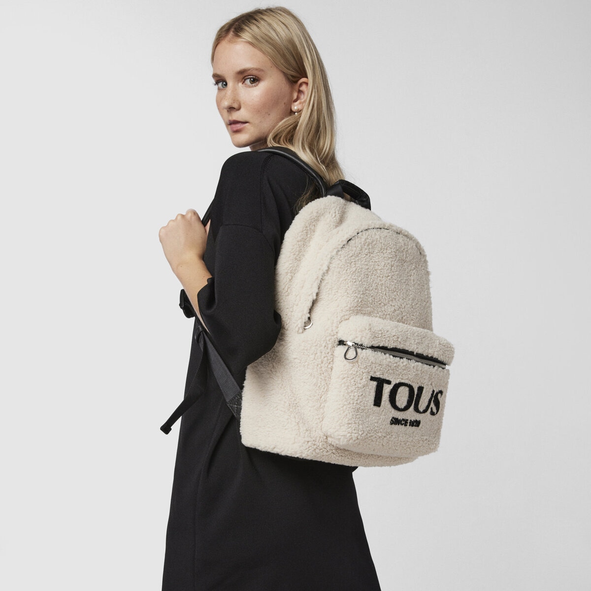 En las ofertas que tienen las tiendas Tous no podía faltar la Mochila mediana beige Amaya Warm. Con un delicada piel estilo borreguito sintético, con sus asas bandoleras totalmente ajustable a tus hombros y asas manuales, ideal para estos últimos días de invierno.