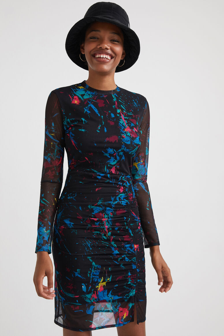 El corte slim fit hace que se ajuste a la perfección a la silueta, mientras que la capa exterior de tul con semitransparencias en la manga y en la falda le aporta un toque más elegante. Una prenda cómoda y bonita que puede darte mucho juego.