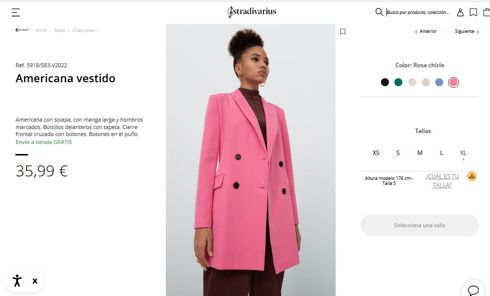 Es una americana con solapa y que cuenta con manga larga y hombros marcados. Por lo que, se considera una de las prendas perfectas que no puede faltar en el closet de una mujer. Además, tiene unos bolsillos delanteros con tapeta. Inclusive, cuenta con un cierre frontal cruzado con botones y los botones en el puño. Para que puedan comprar esta prenda solo tienen que entrar a Stradivarius por 35,99 €.