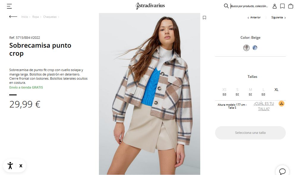 Es una de las grandes sobrecamisa preferidas de las mujeres en esta temporada, además es de punto fit crop con cuello solapa y manga larga. Además, tiene unos bolsillos de plastrón delantero. Inclusive, cuenta con un cierre frontal con botones y unos bolsillos laterales ocultos en costura. Entonces, si desean comprar esta sobrecamisa tienen que entrar a Stradivarius por un precio de 29,99 €.
