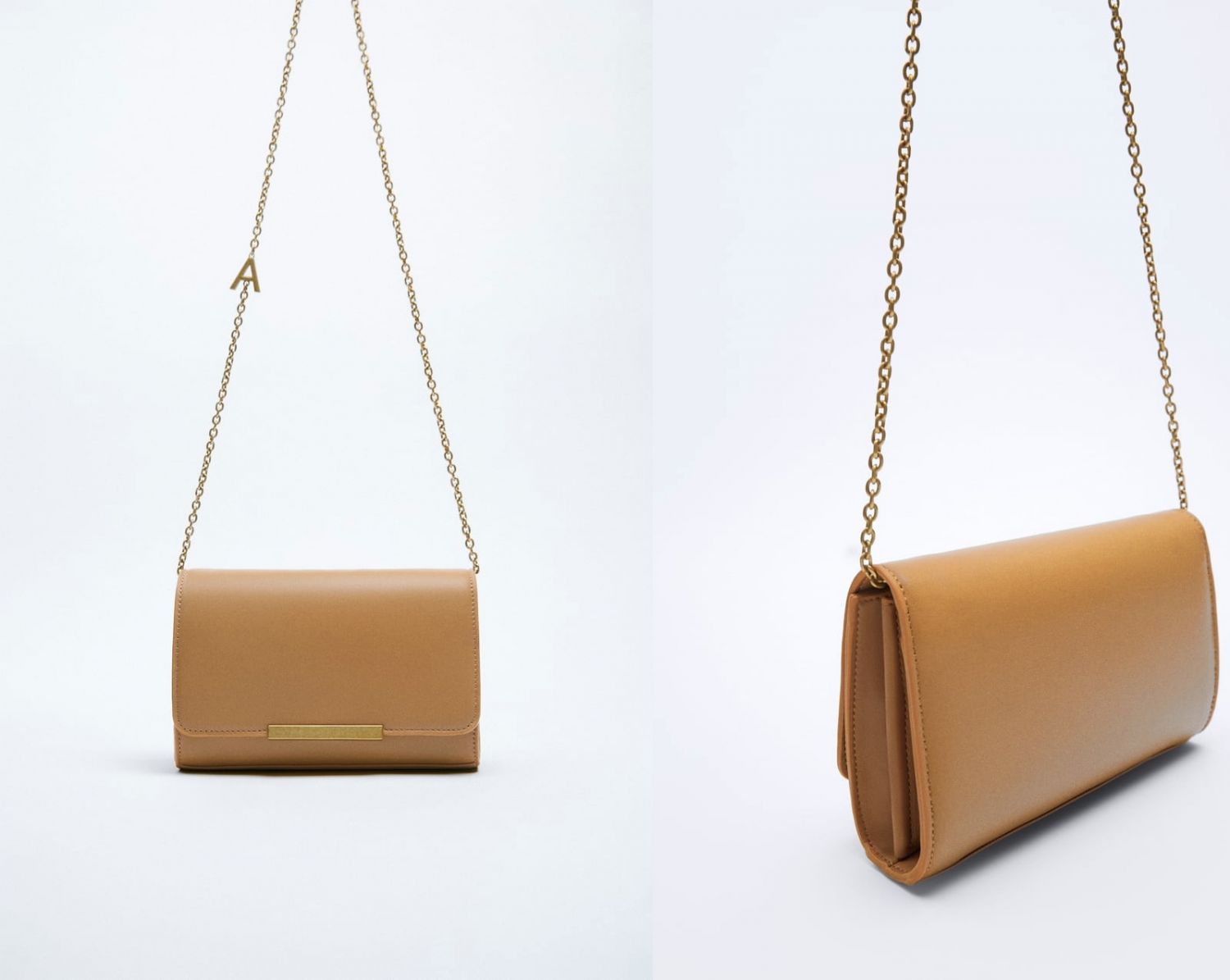 Otro bolso del catálogo de Zara que puedes adquirir en rebajas es este formato bandolera de piel. Disponible en este color marrón, y ahora por un 35% menos, por lo que cuesta 29,99 euros.