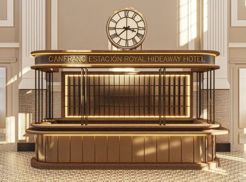 Barceló Hotel Group ha presentado en Fitur 2022 uno de sus proyectos más relevantes del año: Canfranc Estación Royal Hideway Hotel. Se trata del proyecto más ambicioso del grupo: la apertura, prevista para el mes de diciembre, de un nuevo hotel de cinco estrellas Gran Lujo (5*GL) que operará con la marca de lujo Royal Hideaway Luxury Hotels & Resorts en la histórica estación de trenes de Canfranc ubicada en Huesca.
