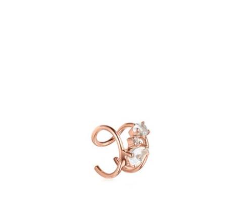 El modelo Tous Eklat es de plata de primera ley recubierto de oro en tono rosado. Decorado con topacios blancos. Un pendiente perfecto para tus estilismos más informales cuando vas con vaqueros, y también cuando tienes que ir más elegante.