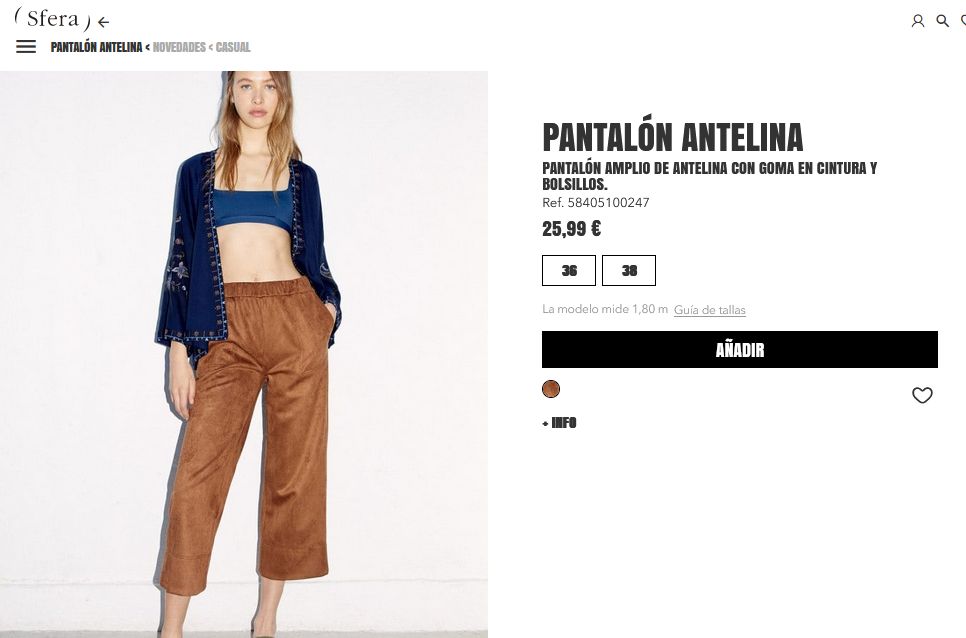 Este pantalón cuenta con un diseño moderno, por lo que se considera otra de las prendas que no deben de dejar de tener en el closet. Además, es amplio de antelina con goma en cintura y bolsillos para que sea aún más moderno. Por lo que, se considera una de las prendas más solicitadas en esta oferta. Entonces, si desean comprar este pantalón solo tienen que entrar a Sfera por un precio de 25,99 €.