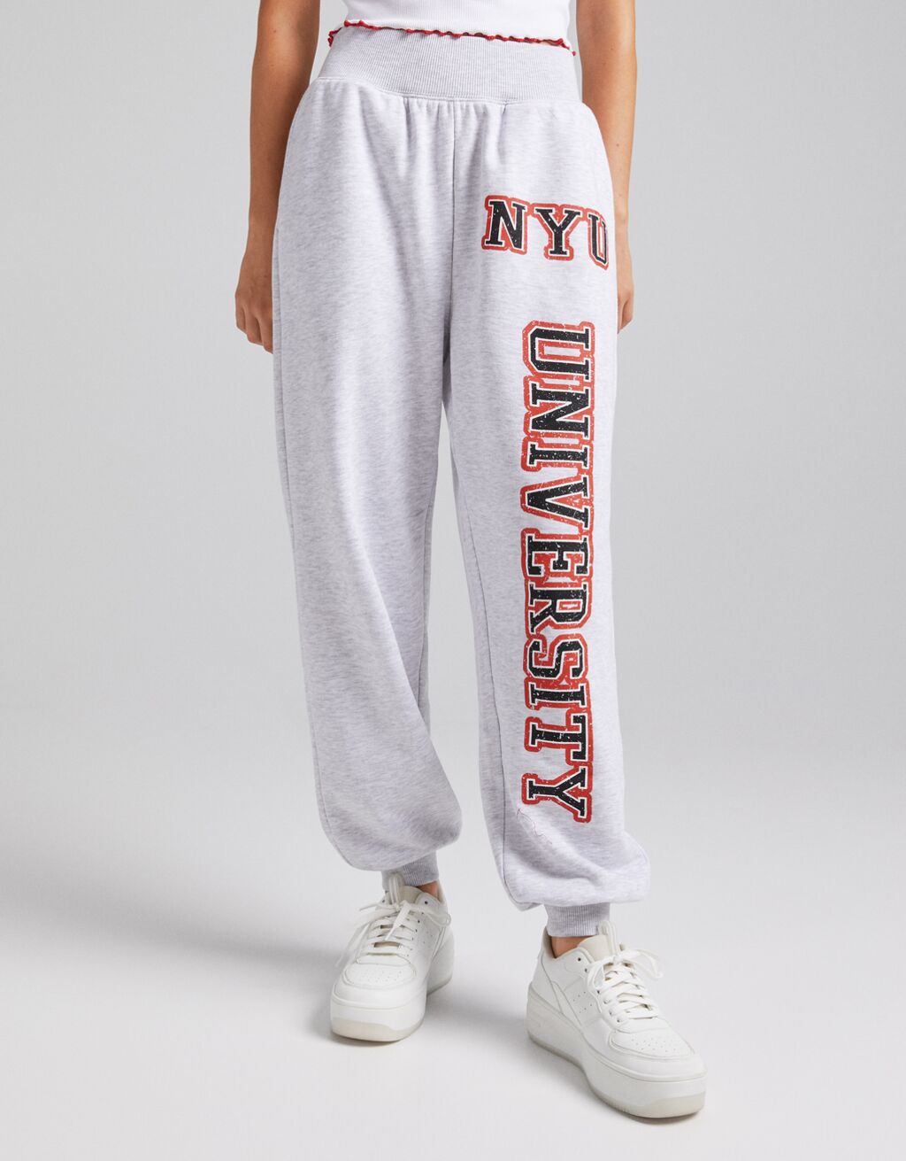 En este caso te proponemos un pantalón de algodón y poliéster. Con ajuste en la cintura mediante elástico y también en los tobillos. Cuenta con dos prácticos bolsillos laterales y estampado NYU.