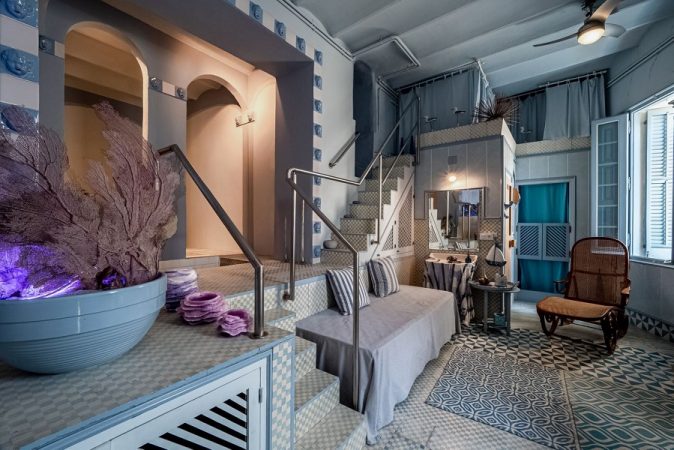 La historia de la villa marinera de Cadaqués, en la Costa Brava catalana, y la casa Serinyana siempre ha estado ligada. El edificio modernista data del año 1913, y fue construida por el arquitecto Salvador Sellés i Baró, por encargo del médico barcelonés Octavio Serinyana. Fue inaugurada el 20 de septiembre de 1913 por su primer propietario, y el nombre de casa Blaua, con el que también se le conoce, viene por sus ventanas y puertas enmarcadas con elementos de cerámica azul. La casa se ubica en el paseo marítimo de uno de los pueblos marineros más exclusivos y a pocos metros de la orilla de la Playa Grande y abierta al mar Mediterráneo.
