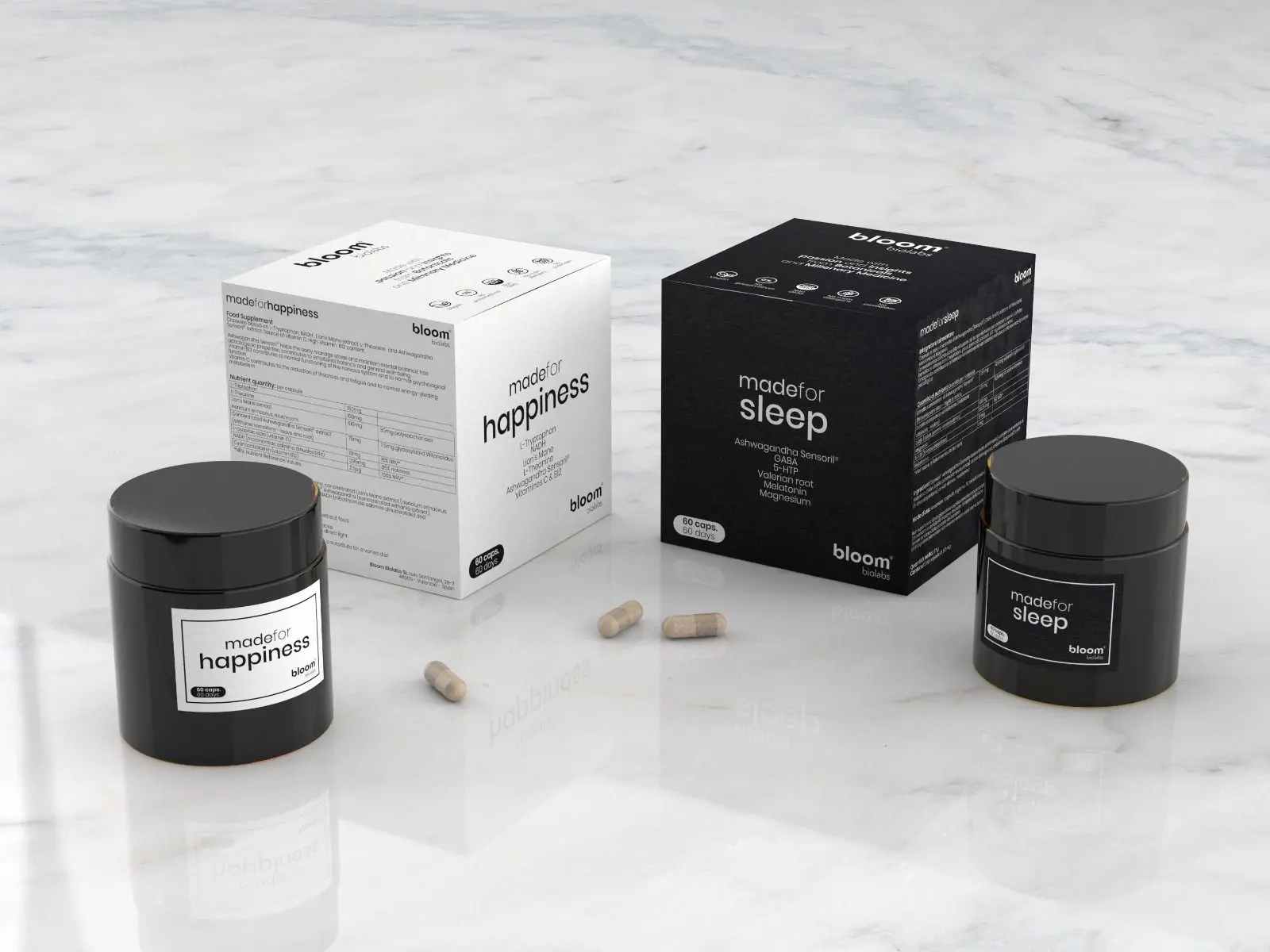 Los dos productos lanzados por el nuevo laboratorio, Bloom biolabs, están basados en extractos de plantas. Made for Happiness ayuda a disminuir el efecto del estrés, a sentirnos animados y tener mayor concentración. Made for Sleep ayuda a conciliar el sueño más rápido, obteniendo un descanso profundo y prolongado.