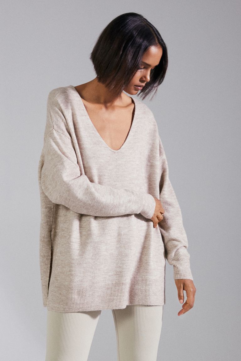 Fácil de combinar y viene en diversos colores, en diseño oversize, con tejido de punto de lana en la trama. Sus mangas largas con los hombros caídos y un amplio y vistoso escote pico. Con perfectas aberturas en sus laterales y su espalda un poco más larga que su parte delantera. Llévala a tu closet por solo 19.99 euros.