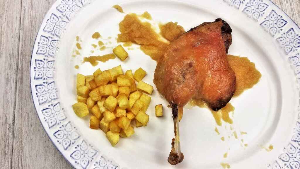 Mientras tienes la cebolla al fuego es hora de ir preparando el pato para añadirlo al plato. Lávate bien las manos y manipula la carne con ella. Retira todos los posibles restos de grasa que puedan estar adheridos.