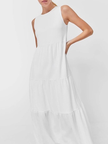 3Este vestido blanco midi sin mangas de Stradivarius lo querrás lucir cuanto antes