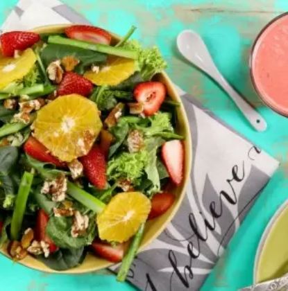 Esta receta es de una ensalada original es mucho más ligera que cualquier tipo de ensaladilla. Y además tiene una mezcla de sabores muy original. Para prepararla lo único que vas a tener que hacer ese mezclar en un bol espinacas, naranja, fresones y nueces caramelizadas.