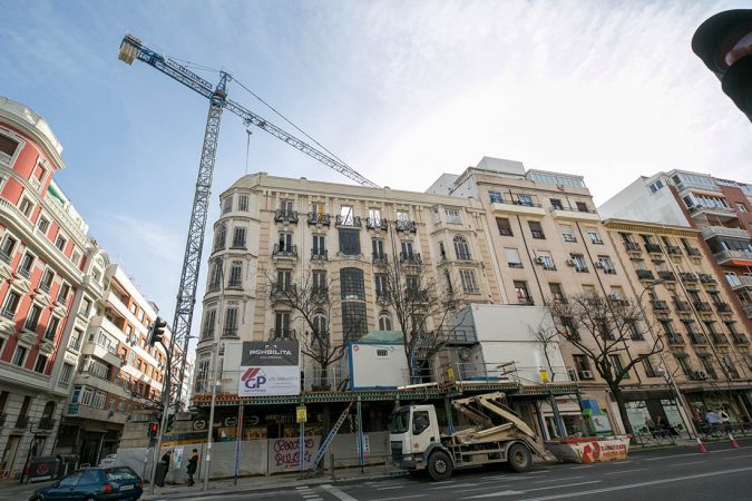 Se trata de un edificio que ya lleva unos años en reforma, pero que también se podrá beneficiar de estas ayudas a la rehabilitación que vienen de los fondos europeos. Tienen 110 años de antigüedad, por lo que está incluido en el Catálogo de Edificios Protegidos con un nivel 2 de protección. Su fachada es muy característica, ya que la esquina entre ambas calles está rematada con un mirador en forma de torre circular.