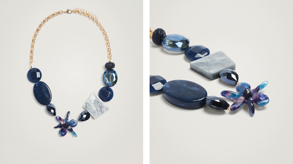 Este otro producto de Parfois es un collar corto con detalles de piedras y flor. Si te das prisa lo puedes conseguir por la mitad de precio, ya que se ha rebajado hasta los 5,99€. Se encuentran disponibles en talla única y en este tono azul.