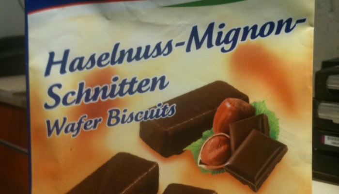 Estas galletas con origen alemán, llamadas Haselnuss-Mignon-Schnitten, están cubiertas de chocolate y rellenas con avellanas y barquillos. No están nada mal, es más, te las recomiendo. Tienen un sabor bastante bueno, es más, muchos dicen que se parecen a la nutella.