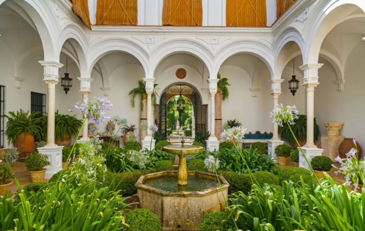 Igualmente, dentro de la finca hay varios porches y patios típicamente sevillanos. Existe una construcción pendiente de remate interior que se trata de una ampliación de la casa principal. Consta de un comedor de 150 metros cuadrados, un segundo comedor más pequeño, una cocina de 70 metros cuadrados, ascensor, zona de servicio con cuarto de plancha, dos amplias galerías dando a segundo patio y cuatro dormitorios con baño y una galería dando al jardín. Por otro lado, la gran amplitud de sus jardines permite celebraciones de más de 150 personas.