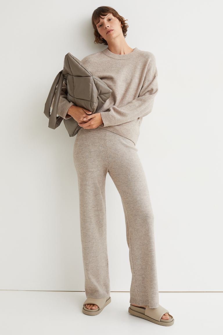 En invierno también hay momentos para ir cómoda, abrigada y bien vestida. Lo puedes conseguir con este original pantalón de punto suave que incluye lana en su trama. Con cintura estándar en punto elástico y perneras rectas.