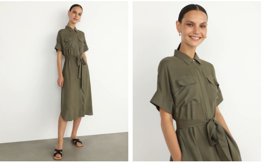 Volvemos a los 19,99 euros. Pasamos de nuevo a otro estilo totalmente diferente pero igualmente de moda. Recuerda que por estos precios lo mejor es renovar tu armario con todo tipo de estilos para combinar en cualquier situación y estado de ánimo. Este vestido camisera pega mucho para el día a día, para largos paseos cómoda, pero también para ocasiones especiales. Es un vestido camisero con lazada de cintura, de manga corta doblada con cierre de botones con tapeta, bolsillos en el pecho y aberturas en los laterales. Lo tienes en El Corte Inglés por 19,99 euros y aquí lo puedes adquirir, bien la unidad o dos para aprovechar el 70% de descuento.