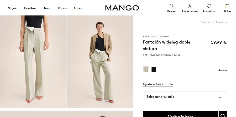 Es un hermoso pantalón que posee un tejido con lana con caña ancha. Además, posee un diseño wideleg y de doble cintura con diseño largo. Inclusive, es de tiro alto, pinzas, trabillas y posee dos bolsillos laterales con forro interior. Para que puedan comprar esta prenda solo tienen que entrar a la plataforma de Mango por un precio de 59,99 €.