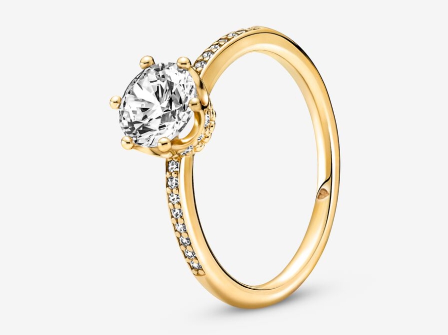 Pandora también tiene este anillo solitario con brillantes y corona que está disponible en plata de primera ley o en dorado, con un baño de oro. El precio es de 89€, como los anteriores, y lo tienes en varios tamaños.
