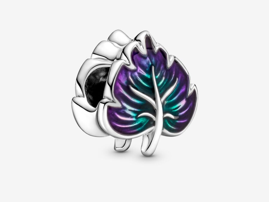 Este charm también está entre los destacados de Pandora. Se puede poner tanto en pulseras como en colgantes, agregando un toque distinguido. Se trata de una hoja en plata con tonos verde y morado. Su precio es de 39€.