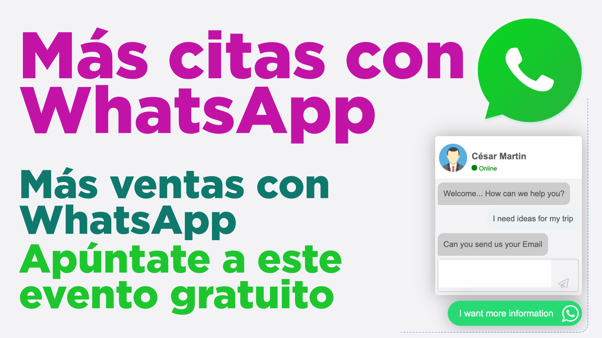 Estos 4 eventos buscan ayudar a 4 sectores muy específicos (profesionales que venden horas, clínicas dentales, “rent a car” y ayuntamientos). Todos los profesionales que quieran adoptar WhatsApp a sus procesos de ventas están invitados a estos eventos gratuitos online.