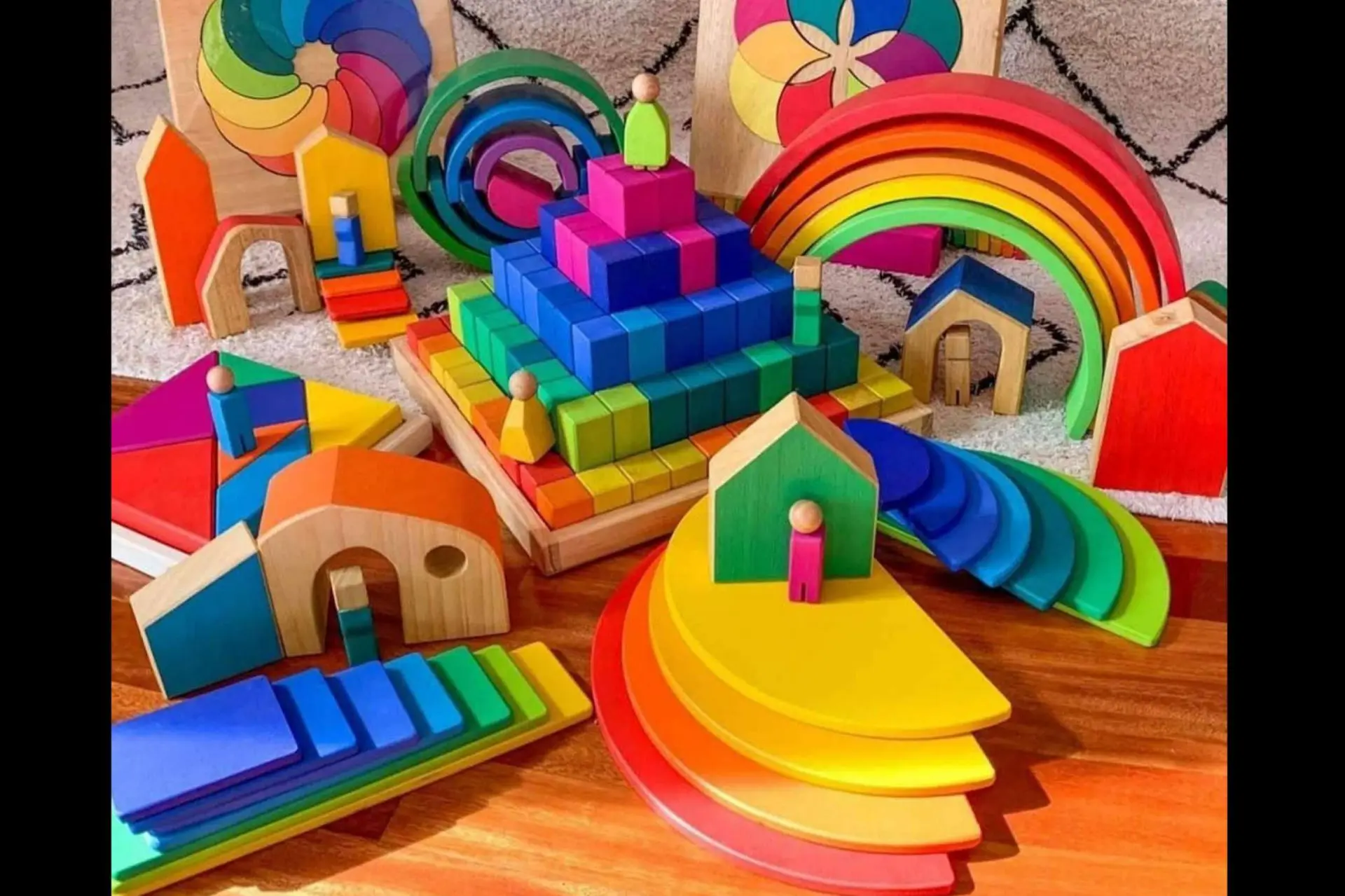 Los juguetes de madera de la línea Waldorf de Planeta Eco Aventura son diseñados en varias categorías. Cada una de ellas tienen propiedades específicas para promover habilidades en los niños, como la creatividad. Los juguetes de la categoría Arcoiris ofrecen, a través de los colores y las formas, cientos de opciones de armado para los niños.