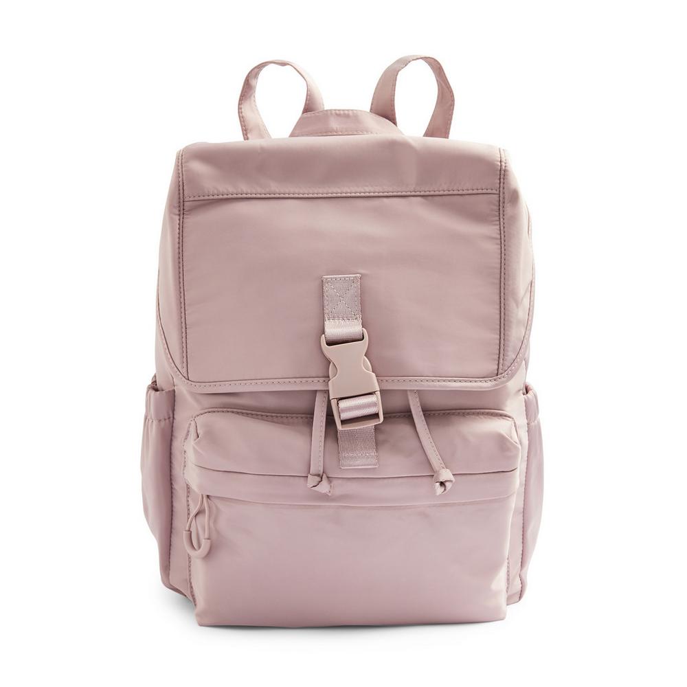 La Mochila rosa empolvado de nailon con hebilla de desenganche rápido, que tiene Primark en sus tiendas, es una mochila cómoda y muy versátil, para llevarla a tu oficina, si vas al colegio o te vas un fin de semana de camping.