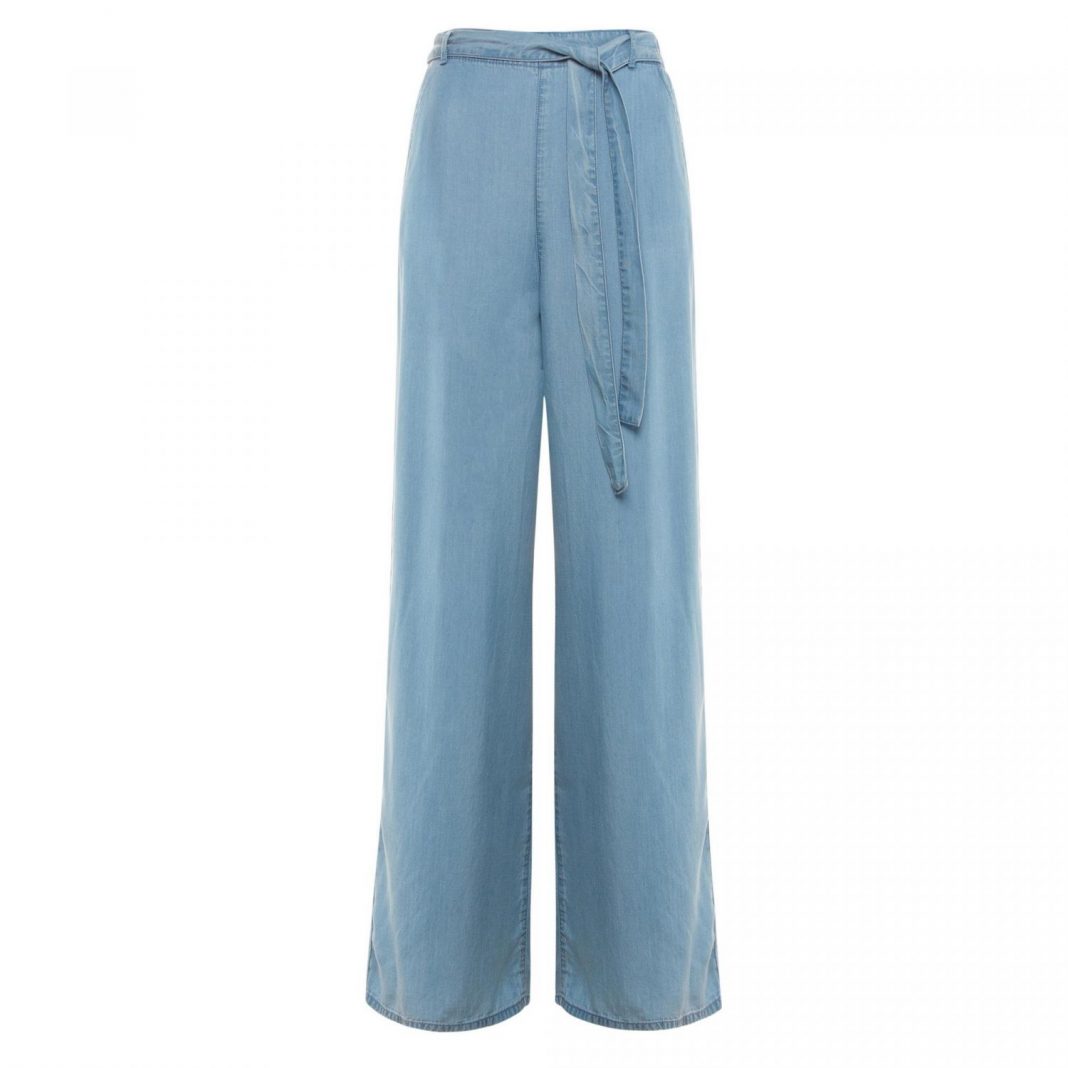 Un vaquero azul de tencel con pernera ancha y cinturón en el mismo tejido. Queda genial con un bonito top o incluso un body. Y si lo combinas con una chaqueta vaquera consigues un total look a la última.