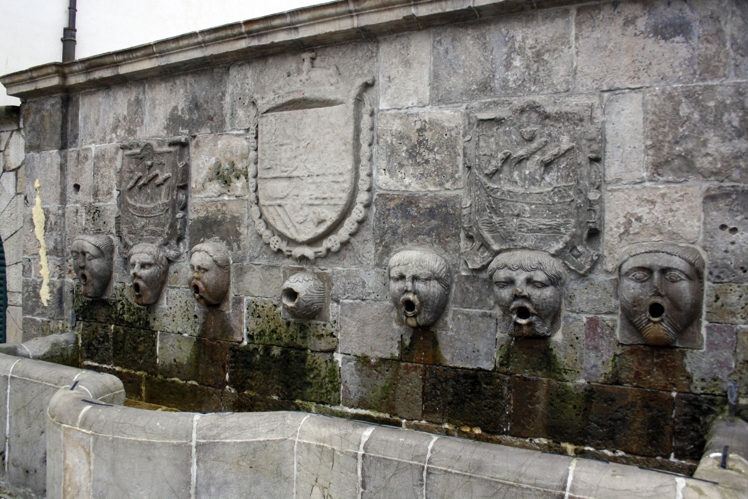 Si subimos hacia Asturias, concretamente a Avilés, podemos visitar esta bellísima construcción de data del siglo XVII. Se encuentra en el centro de la ciudad, en las proximidades de la iglesia de San Nicolás de Bari y del Palacio de Ferrara. Es verdaderamente curiosa y encantadora, y se compone de un frontal de piedra del que surgen seis inquietantes cabezas humanas de cuyas bocas brota el agua hacia un pilón. Además, se ven varios escudos heráldicos, dos de Avilés y el escudo de armas real.