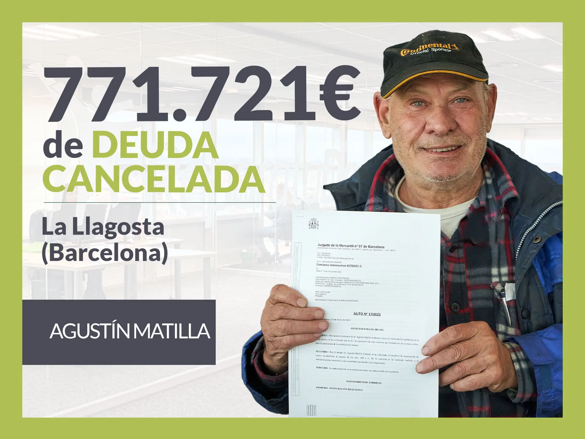 El Juzgado de lo Mercantil nº7 de Barcelona (Catalunya) ha dictado Beneficio de Exoneración del Pasivo Insatisfecho (BEPI) en el caso de Agustín Matilla, quedando exonerado de una deuda de 771.721 euros. El caso lo ha tramitado Repara tu Deuda Abogados, despacho de abogados líder en España en la Ley de Segunda Oportunidad. VER SENTENCIA