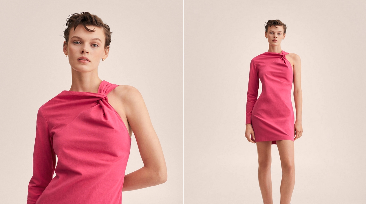 Por 39,99€ tienes este vestido fucsia asimétrico con nudo en Mango. Una prenda extraordinaria que solo encontrarás en la modalidad de venta online. Está disponible en varias tallas, y se ha usado un 98% de algodón y un 2% de elastano.