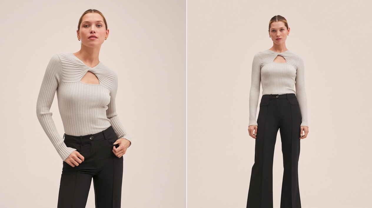 La siguiente prenda de Mango de venta exclusiva online es este bonito jersey de canalé con nudo que venden por 29,99€. Disponible en tono beige y con varias tallas.