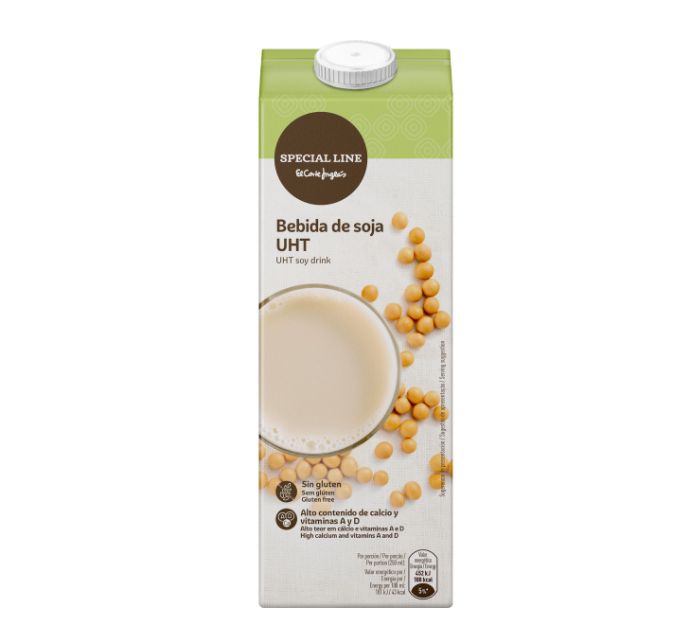 Terminamos en esta lista de diez con un producto ecológico y para usuarios que se alimentan sano o bien los que no quieren o pueden tomar lácteos y optan por otras vías. El Corte Inglés es un referente en productos bios por cantidad y calidad. Nos quedamos con esta bebida de soja ecológica Special Line sin gluten en envase de 1 litro. Su precio es de 1,29 euros y el segundo se queda a mitad de precio.