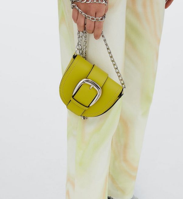 Este artículo va a encantar a todas las amantes de los bolsos pequeños. Se trata de una bandolera tamaño mini que destaca por tener una asa de cadena y una hebilla grande que hace las veces de sistema de cierre. Está disponible en tres colores y su precio es de tan solo 12’99 euros.