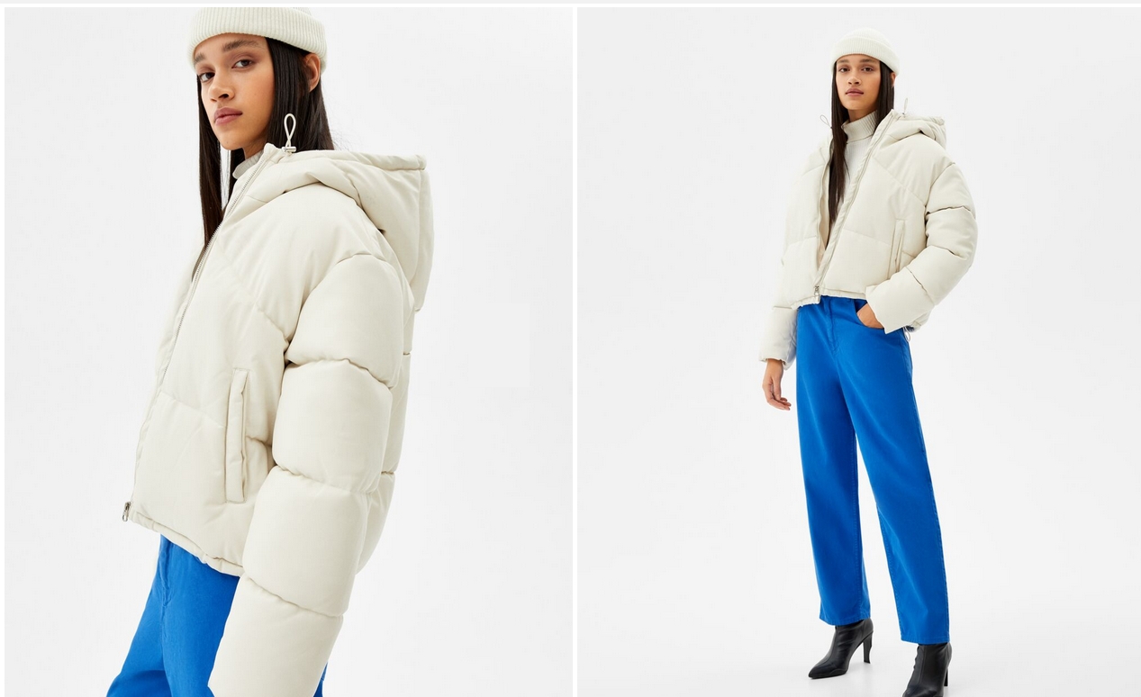 Por último, también tienes esta cazadora puffy efecto piel con capucha. El precio en Bershka es de 39,99€, en cualquiera de las tallas (para adultos y niños) y colores (piedra y negro).