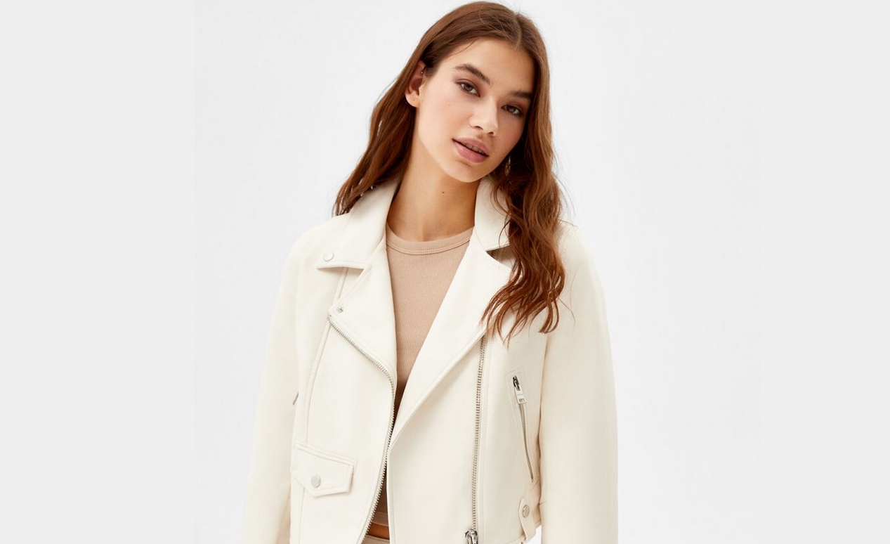 Por tan solo 25,99€ tienes también esta cazadora biker efecto piel de Bershka. La encontrarás en varias tallas y en 3 colores para elegir el acabado que más te guste entre: crudo, negro y rosa.
