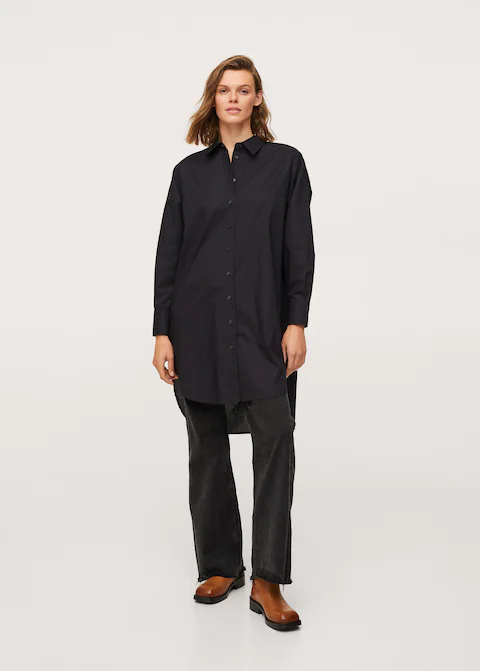 Esta camisa pertenece a la colección Committed y está elaborada en 100% Algodón. Cuenta con un diseño oversize y largo. Posee un cuello clásico y de manga larga con puños abotonados. Además, posee un bajo asimétrico y un cierre de botones en la parte delantera. Entonces, si desean comprar esta prenda solo tienen que entrar a Mango por 8,99 €.
