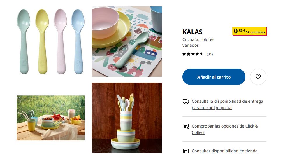 Viene en diferentes colores alegres para elegir. El plástico no se rompe y es inocuo, ya que no lleva aditivos. Como se puede reutilizar, es una alternativa sostenible a los cubiertos de usar y tirar. Una serie de productos de colores vivos, resistentes a los golpes y fáciles de agarrar. Ideales para que los bebés aprendan a comer solos. Entonces, si desean comprar estas cucharas solo deben entrar a Ikea por un precio de 0,50€.