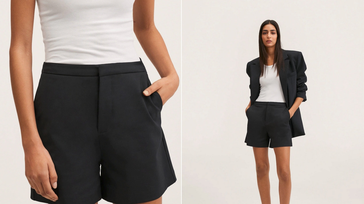 Fabricados en mezcla de algodón, elastano y poliéster, también están etiquetados como Committed. Una prenda con un tamaño medio, estilo slim fit, tiro alto, cortos, rectos, bolsillos laterales, forro interno y con cierre por cremallera y gancho en el frontal.