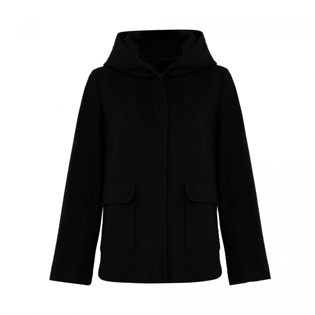 Este diseño es tan sencillo como elegante. Con cierre que queda oculto por la solapa, dos bolsillos en la parte delantera y cuello elevado.